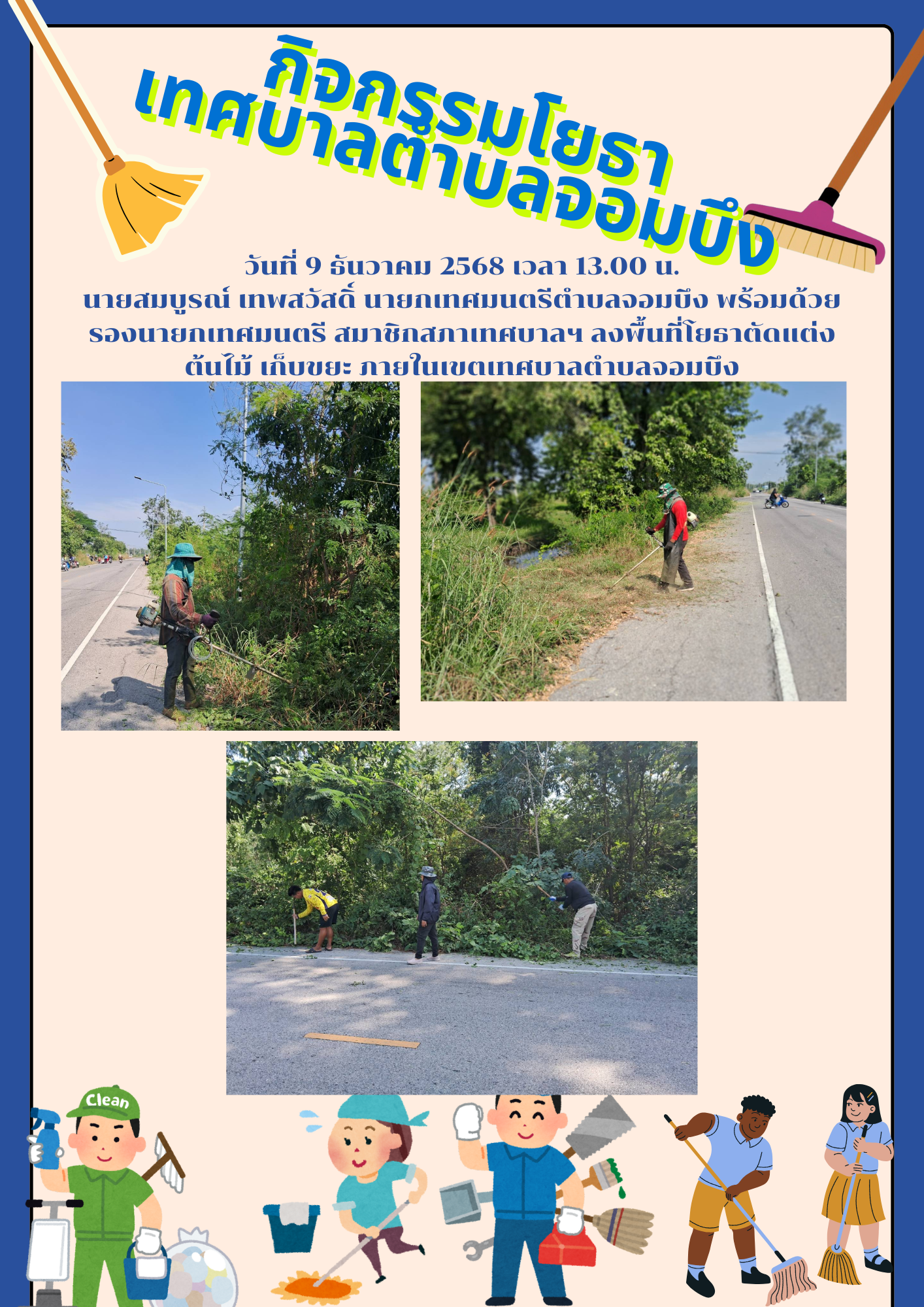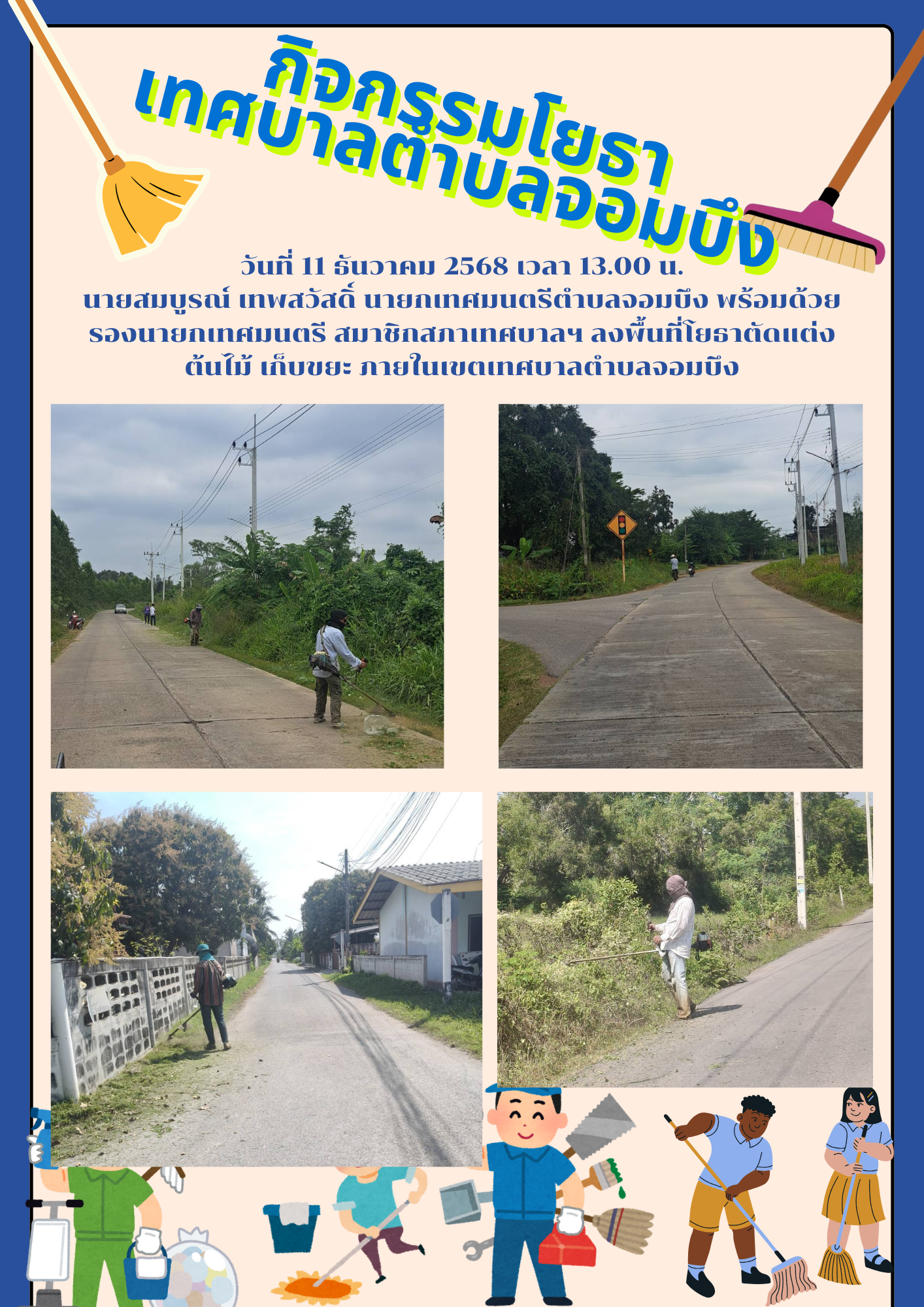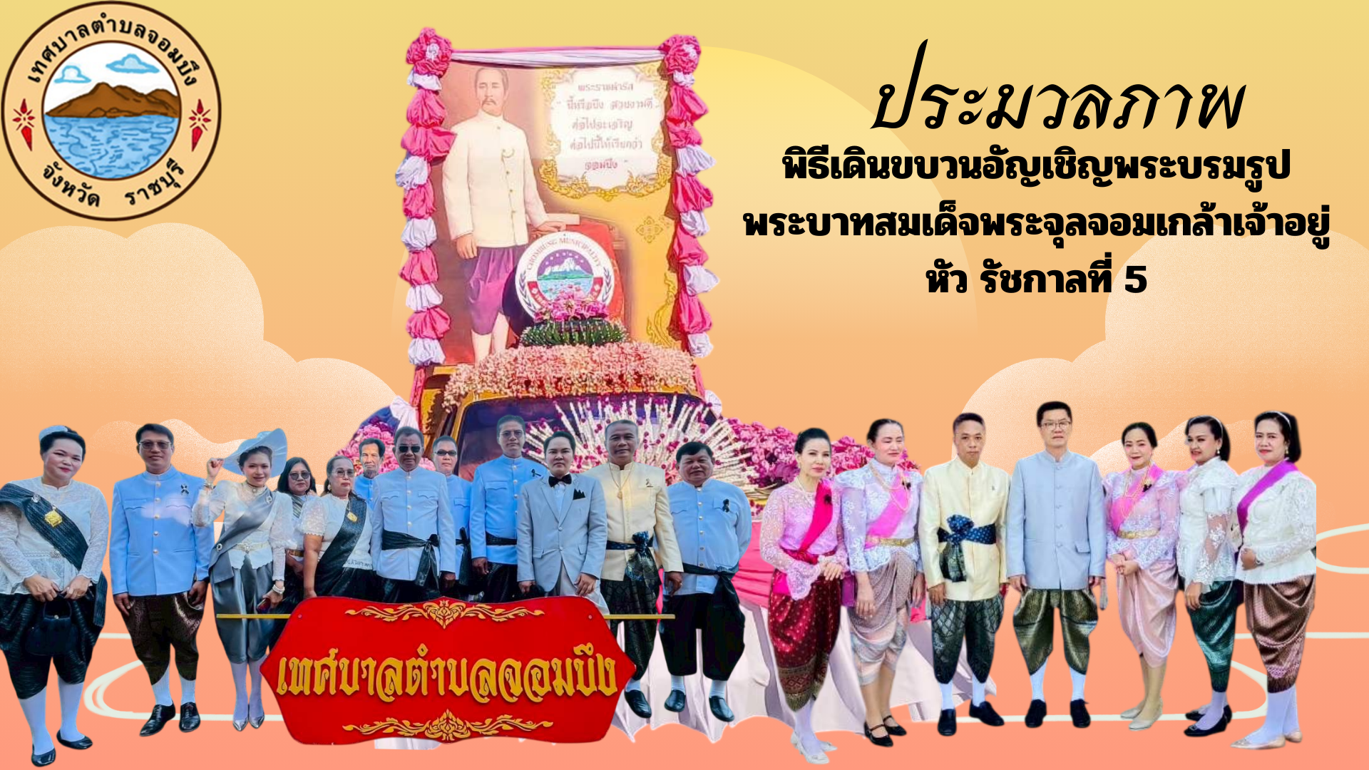 วันที่ 19 ธันวาคม 2568 เวลา 16.30 น. นายสมบูรณ์ เทพสวัสดิ์ นายกเทศมนตรีตําบลจอมบึง มอบหมายให้นายวีระ ศรีทอง รองนายกเทศมนตรีตําบลจอมบึง พร้อมด้วยนายไพเราะ จันทร์เพชร ปลัดเทศบาลตําบลจอมบึง นำคณะผู้บริหาร , สมาชิกสภาเทศบาลตําบลจอมบึง , ข้าราชการ พนักงานเทศบาลตําบลจอมบึง และประชาชนในเขตเทศบาลตําบลจอมบึง ร่วมเดินขบวนอัญเชิญพระบรมรูปพระบาทสมเด็จพระจุลจอมเกล้าเจ้าอยู่หัว รัชกาลที่ 5 (องค์จำลอง) งานสักการะพระบรมราชานุสาวรีย์รัชกาลที่ 5 สืบสานประเพณีของดีอำเภอจอมบึง และรำลึกถึงรัชกาลที่ 5 เสด็จประพาสจอมบึง ครบรอบ 130 ปี ครั้งที่ 22