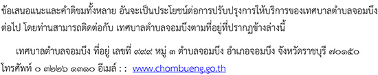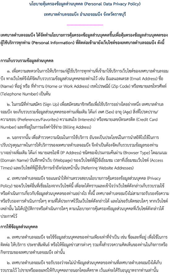ลิขสิทธิ์ © 2558-2564 เทศบาลตำบลจอมบึง จังหวัดราชบุรี. สงวนไว้ซึ่งสิทธิทั้งหมด. สำนักงานเทศบาลตำบลจอมบึง อำเภอจอมบึง จังหวัดราชบุรี โทร 0-3226-1310 นโยบายการคุ้มครองข้อมูลส่วนบุคคล